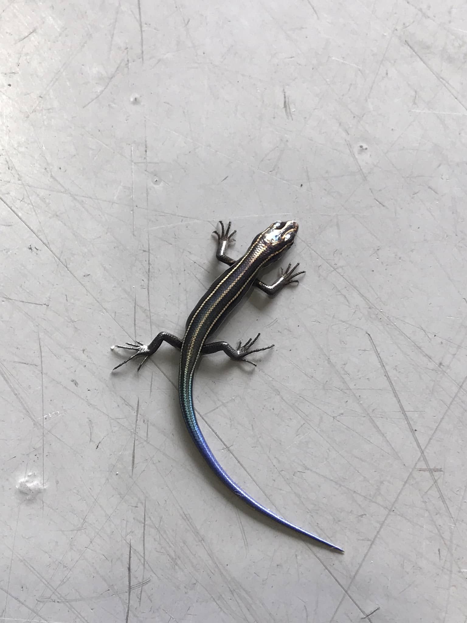 ガレージの床に、小さなトカゲがいました。