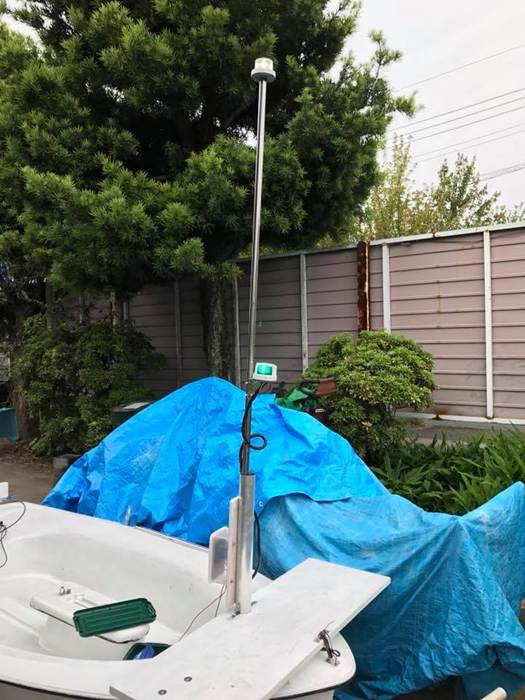 夜間航海灯を付けたマストも 蝶ネジでワンタッチで取り付けできるのですが