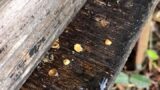 日本ミツバチの巣からはちみつを採取したあとに残る**蜜蝋(ミツロウ)**を、