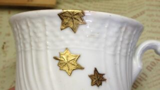 陶磁器 🍁 依頼品の金直し ― 金継ぎに見えない金継ぎ / Invisible Kintsugi with Maple Design <meta name="description" content="純白のカップを本漆と純金粉で修復。欠けを目立たせず、金のモミジ模様で包み込むようにデザインした“金継ぎに見えない金継ぎ”です。"><meta name="description" lang="en" content="Invisible kintsugi using natural urushi lacquer and pure gold. A chipped white cup reborn with gold maple motifs — turning repair into design itself."> 2023.10.28 陶磁器