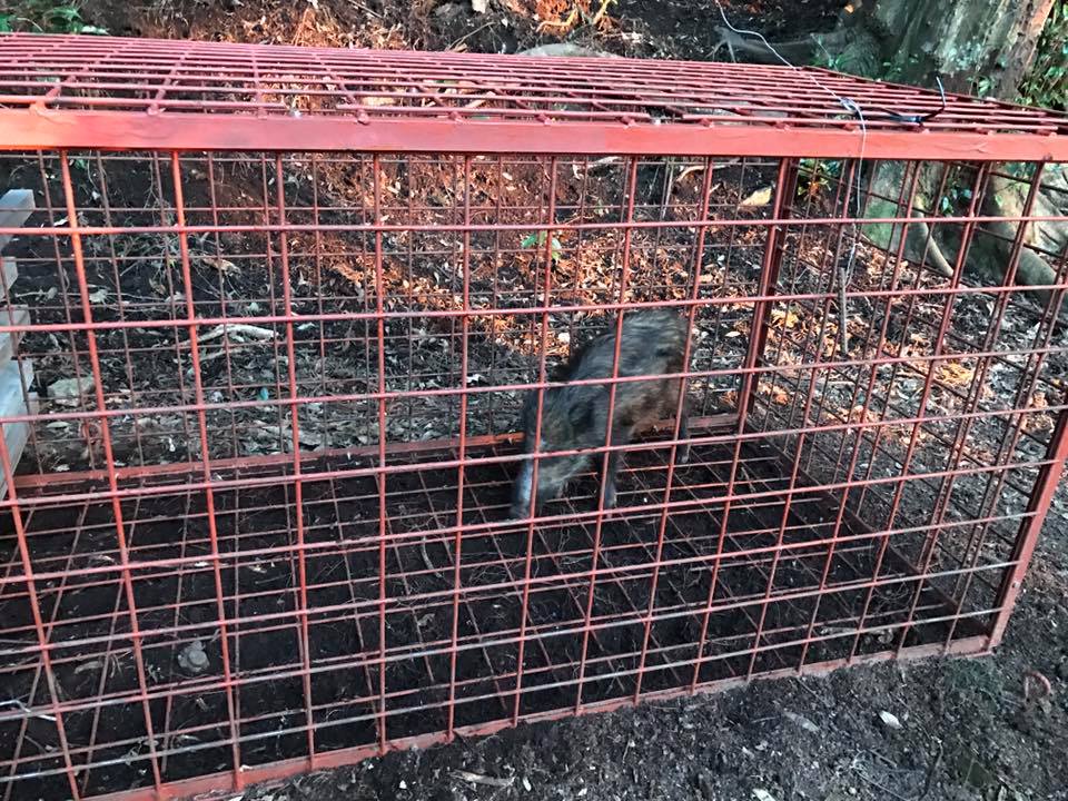 罠に入ったイノシシ / Wild boar caught in a cage trap