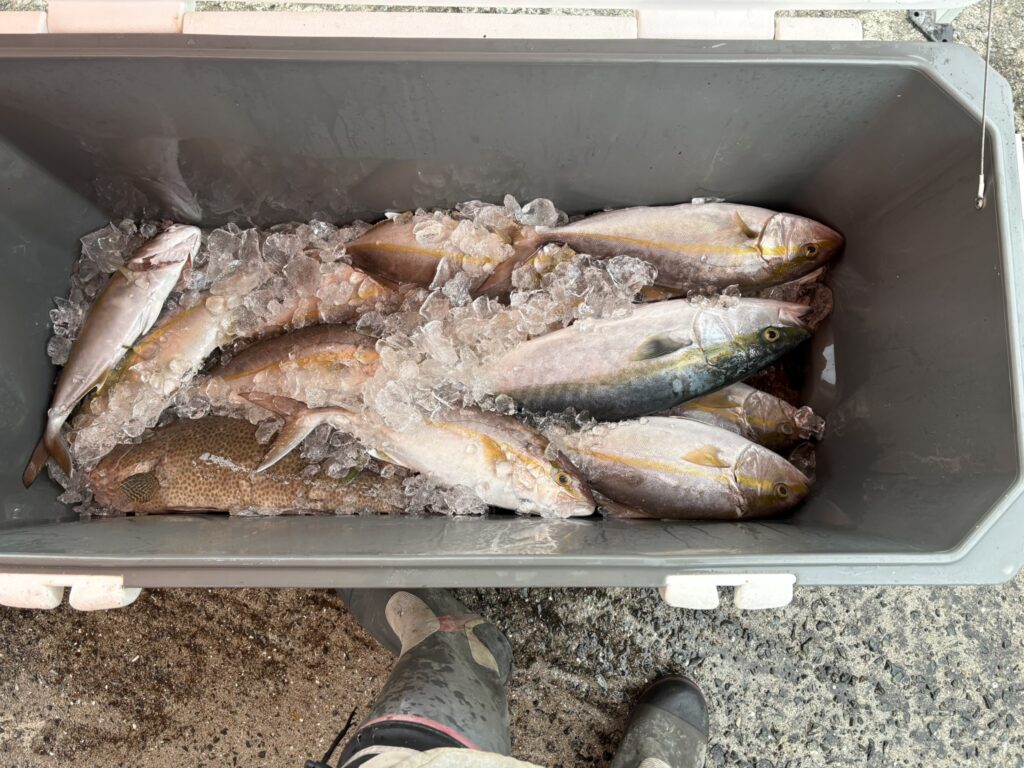 The day’s catch — mostly amberjack, kept fresh on ice.