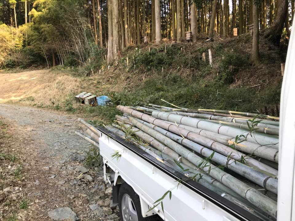 チェーンソーの音と竹の香りの中、ひたすら草を刈り、枝を払い――