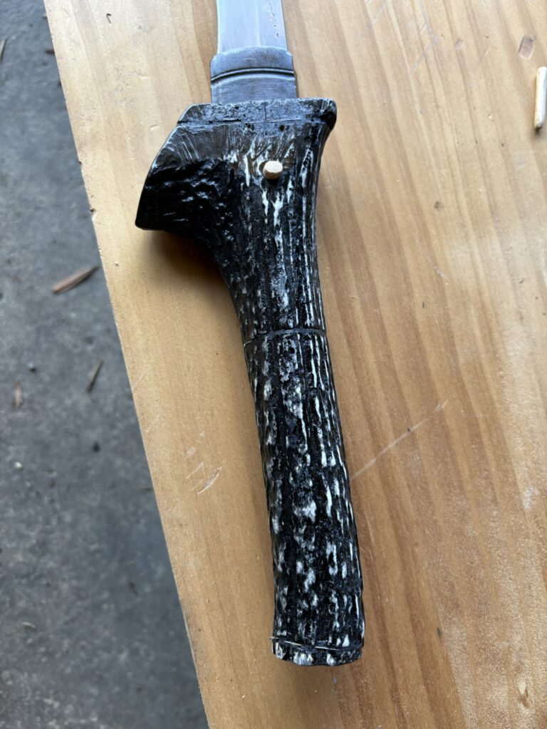The antler split in half to fit the tang snugly.