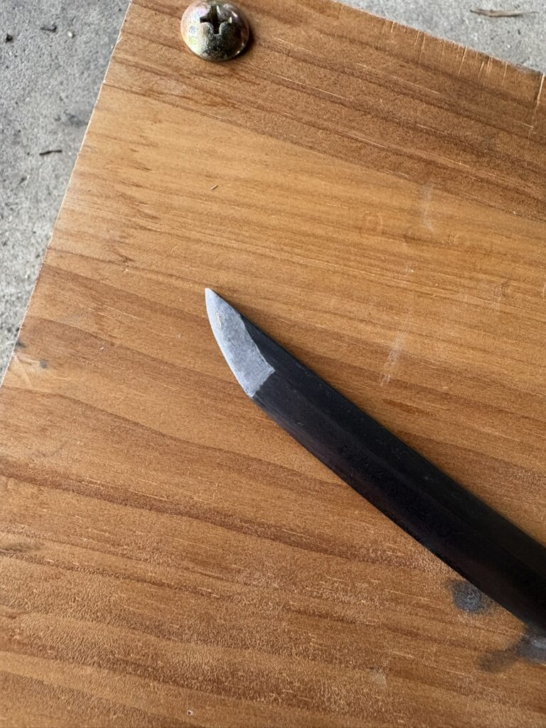 以前に研ぎ直した日本刀の残欠を、実用的なナイフとして蘇らせた。