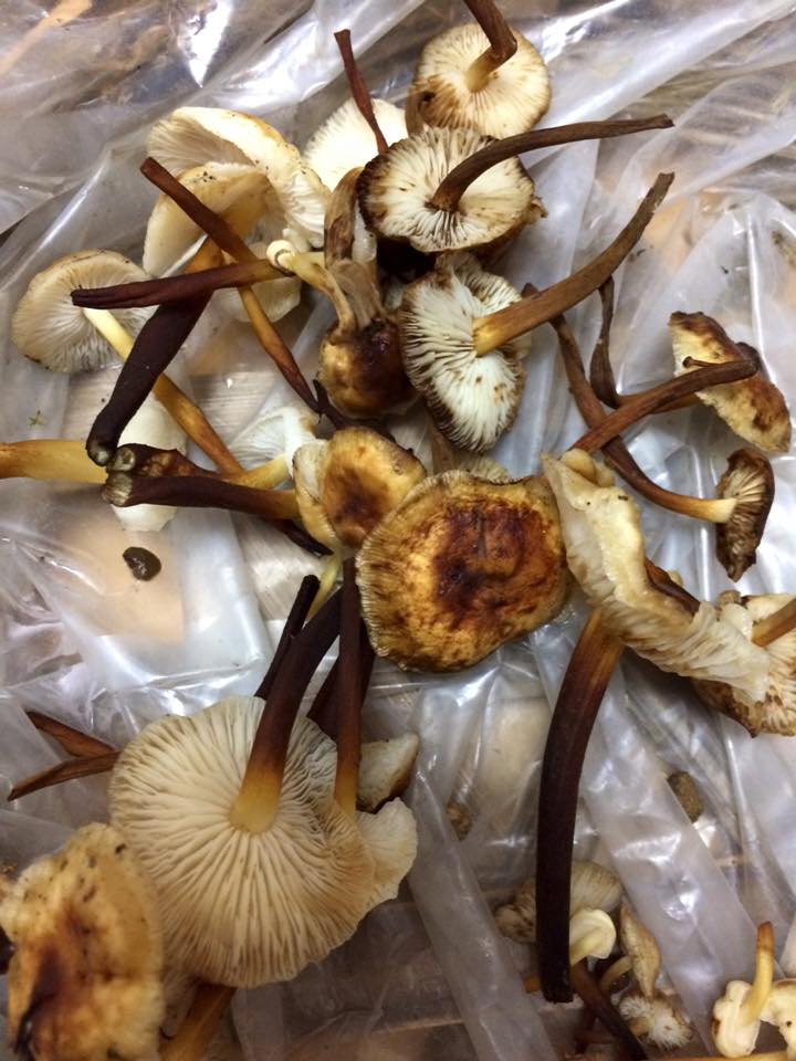 販売されている白くて細長いエノキとはまったく色合いが違います。
