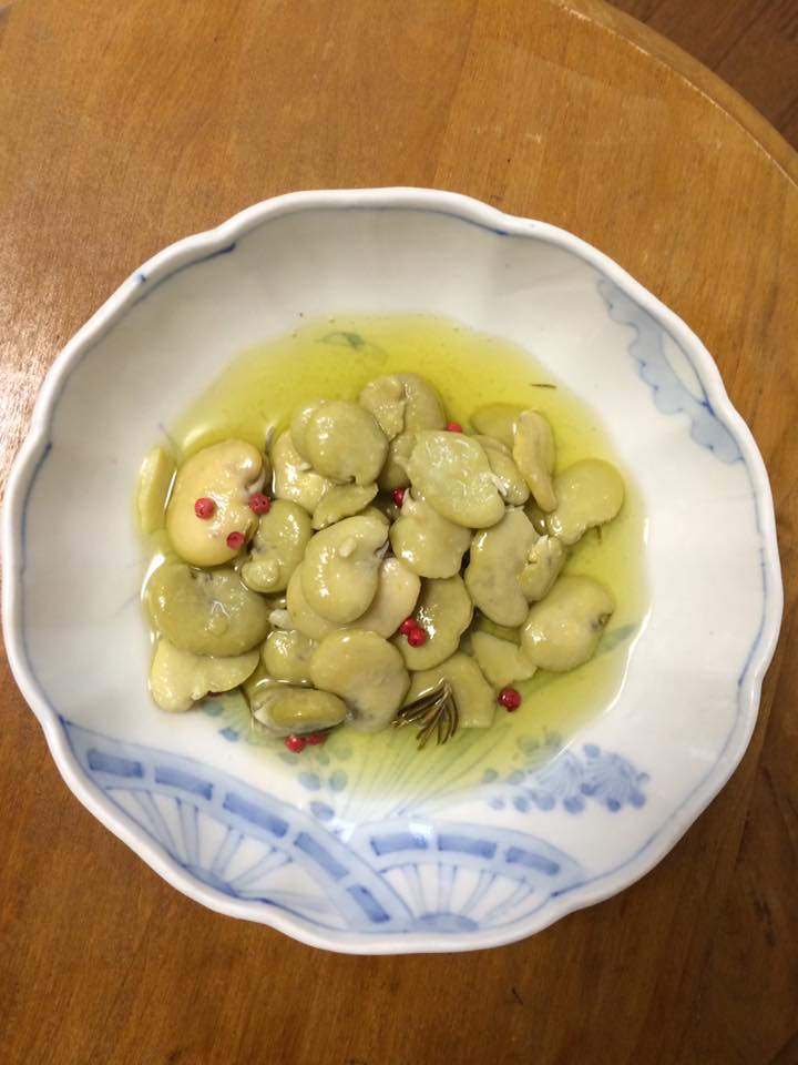 数日前に、最近ちょっと話題のそら豆のオリーブオイル漬けを作ってみました。