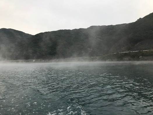 海面から湯気が出ています。