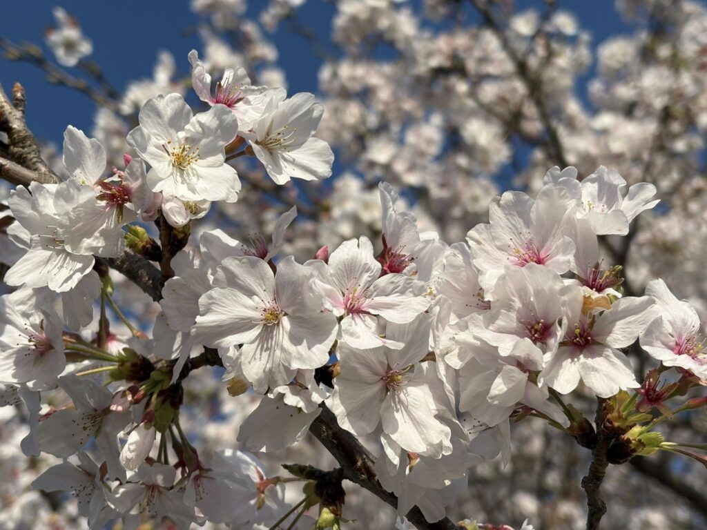 遠くに大きな桜の木があり、枝の奥にさらに満開の花が見えるのです。