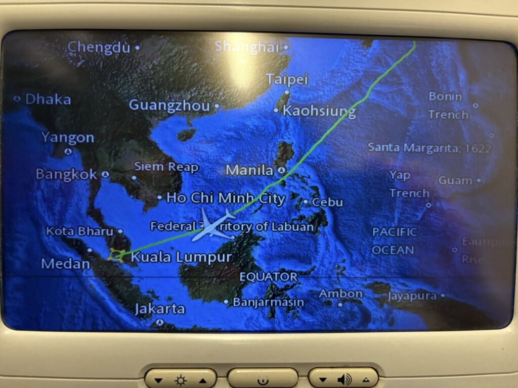 関西空港からクアラルンプールまで、およそ7時間の空の旅です。