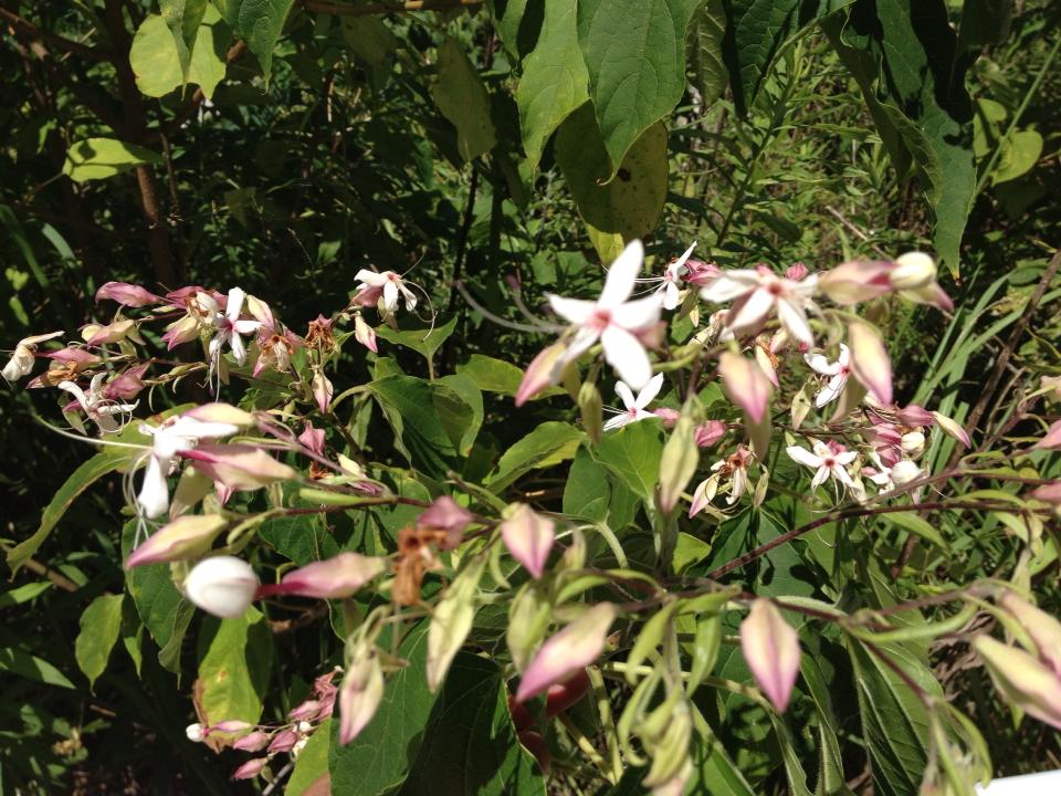 Known as *Clerodendrum trichotomum*, this plant has jasmine-like blossoms despite its name meaning “smelly tree.”