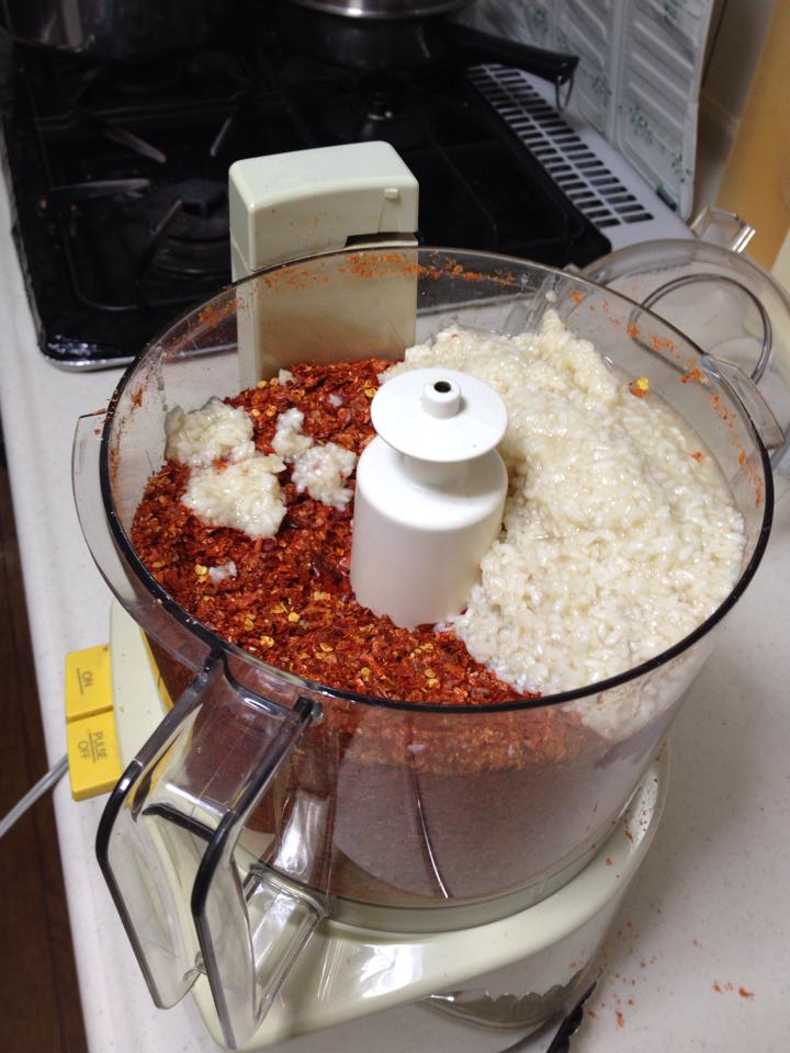 Fermenting red chili peppers with yuzu zest and rice malt.
