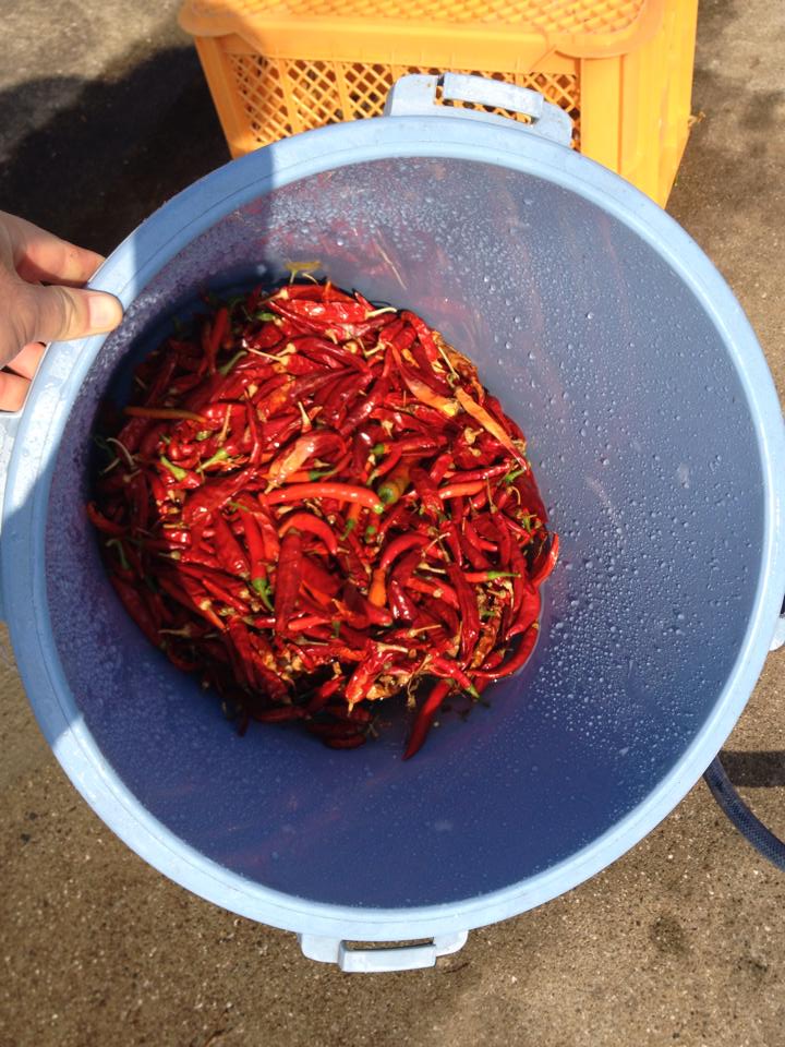 赤唐辛子を使って、妙高高原名物・かんずり風の発酵調味料に挑戦です。