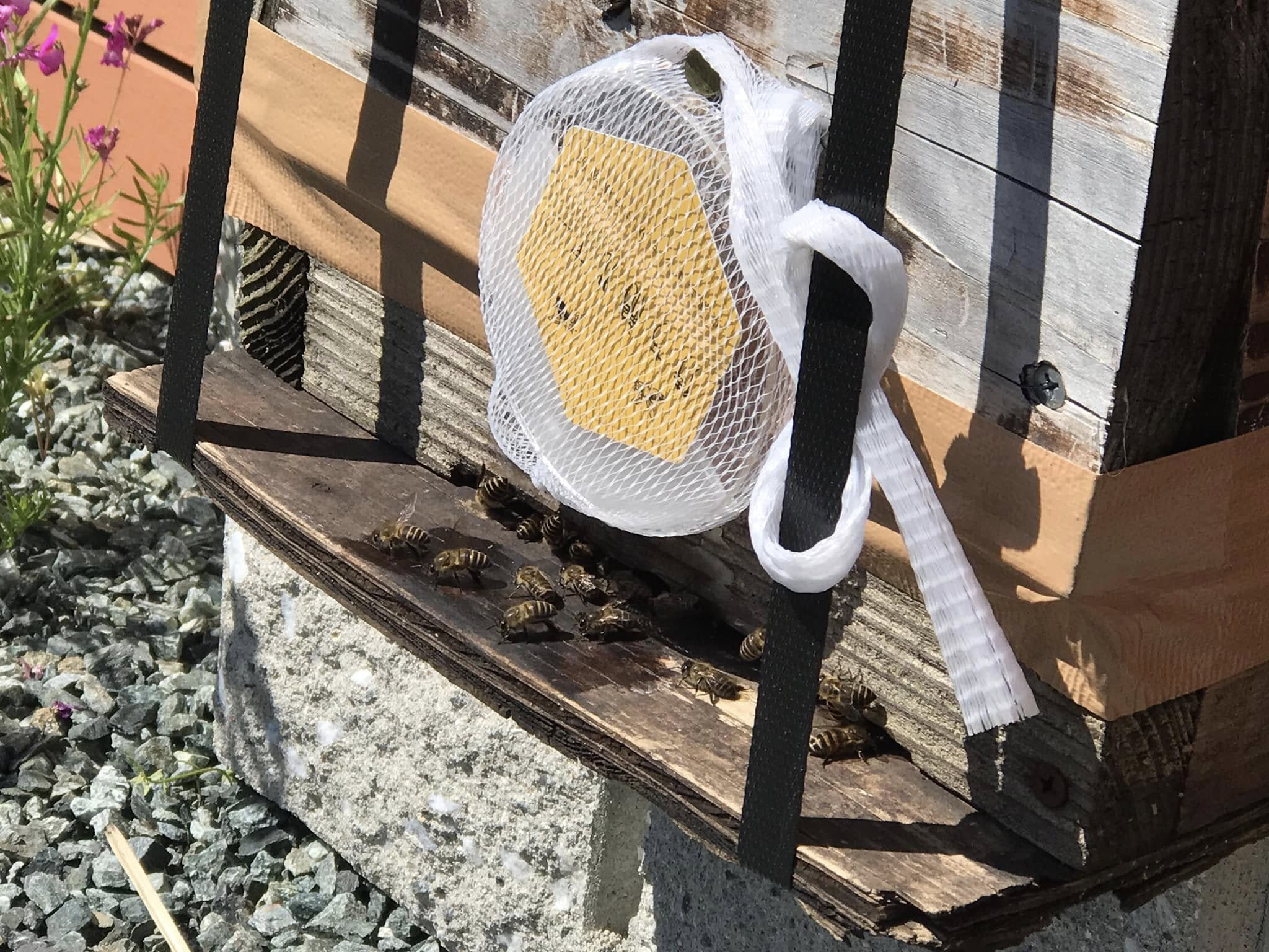 アアジトに置いていた空箱に、日本ミツバチさんが今年も御入居のようです。🐝