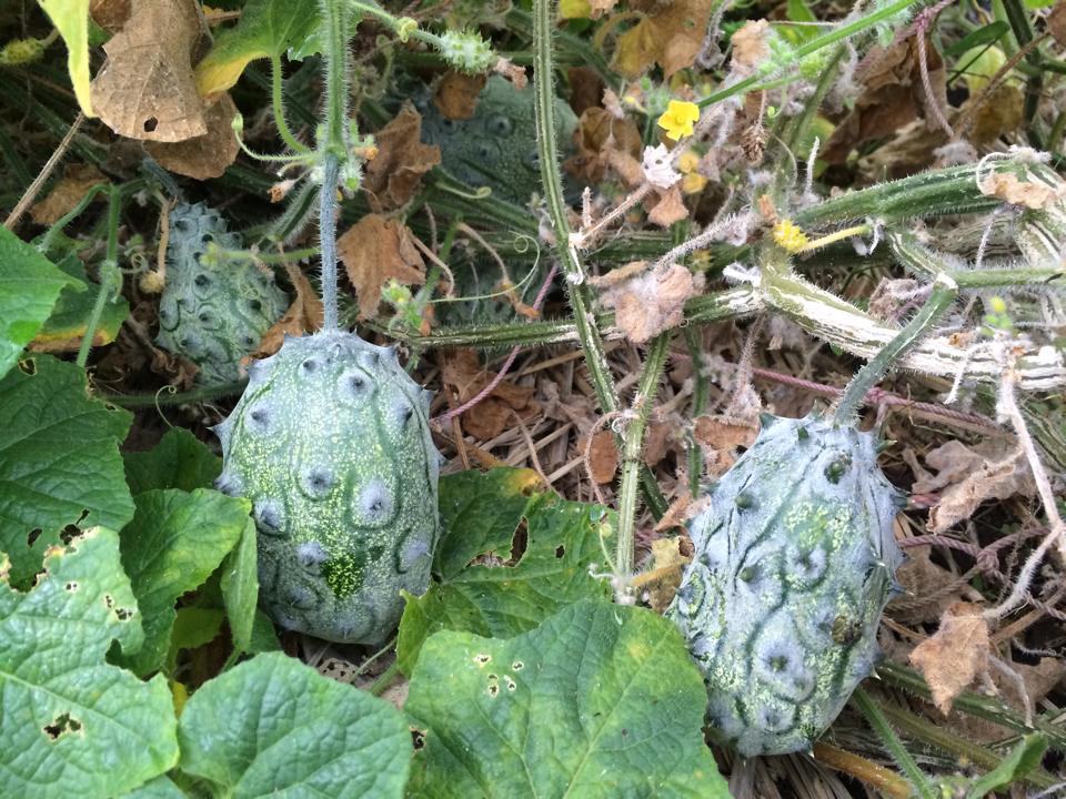 今年の畑では、**キワノ(ツノニガウリ)**を育てています。