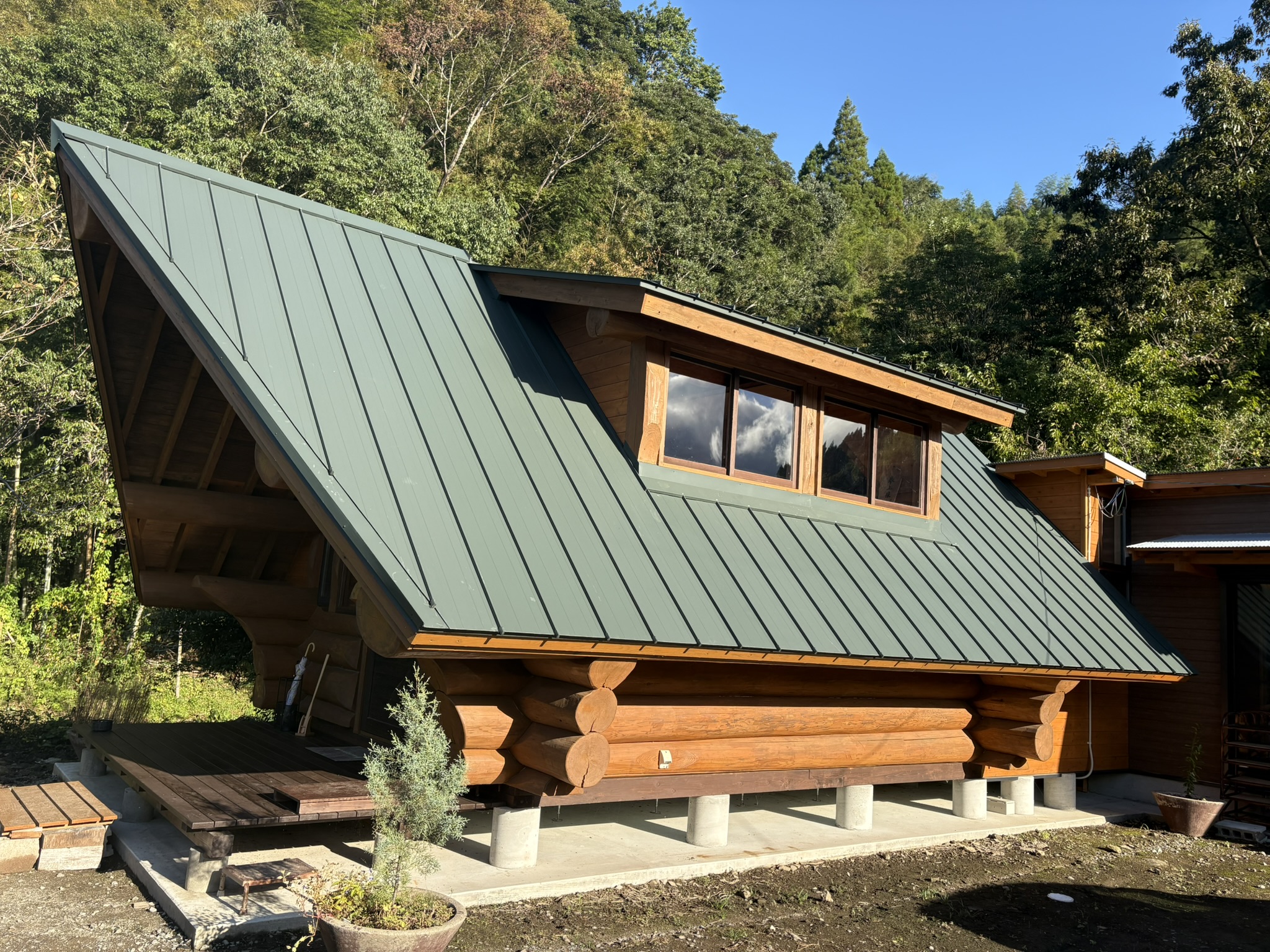 到着すると、濃い緑の屋根が印象的なログハウスが木立の中に建っていた。