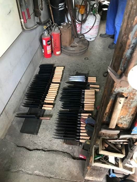 このズラリと並んだ包丁は全部海外からの注文品だそうです。目目