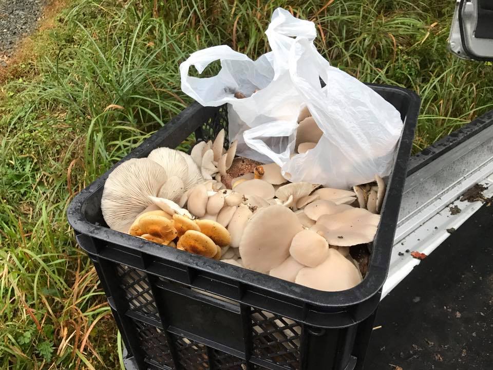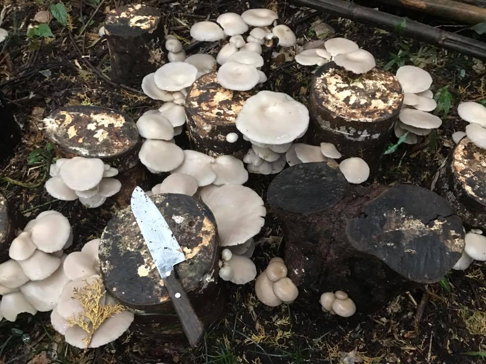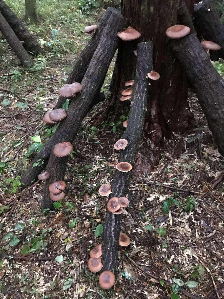 What started as a casual check turned into a fungal explosion — logs covered in Hiratake, Shiitake, Enokitake, and Nameko.