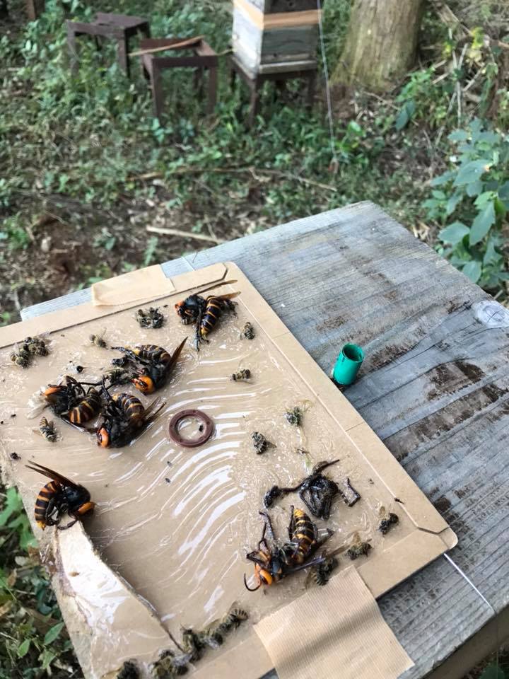 秋口になると、オオスズメバチがミツバチを襲いにやってきます。