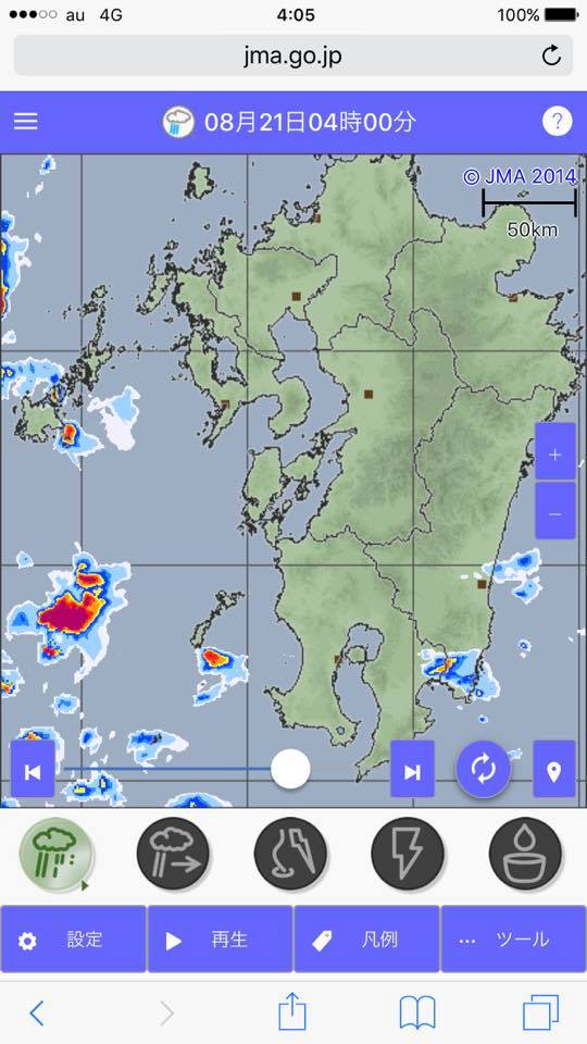 レーダーエコーで見てみると、九州のはるか西方海上にしか雷雲はありませんが