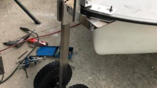 ボート先端に跳ね上げ式ドーリーを増設。応力をステー全体で分散して船体を保護し、アルミ溶接で軽量化。塩害耐久を見ながら実戦投入する装備改良の記録。