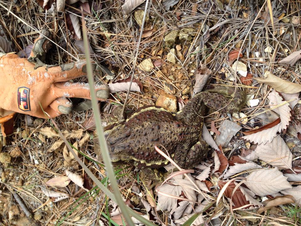 ここ上球磨では、山の散策中によく巨大なヒキガエルに出会います。
