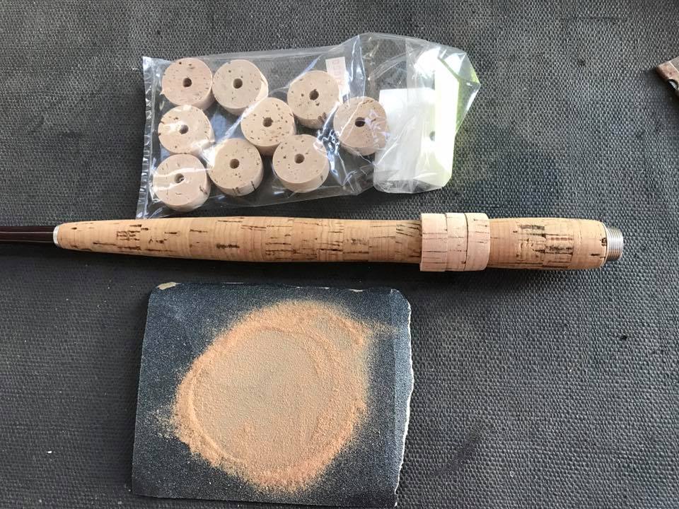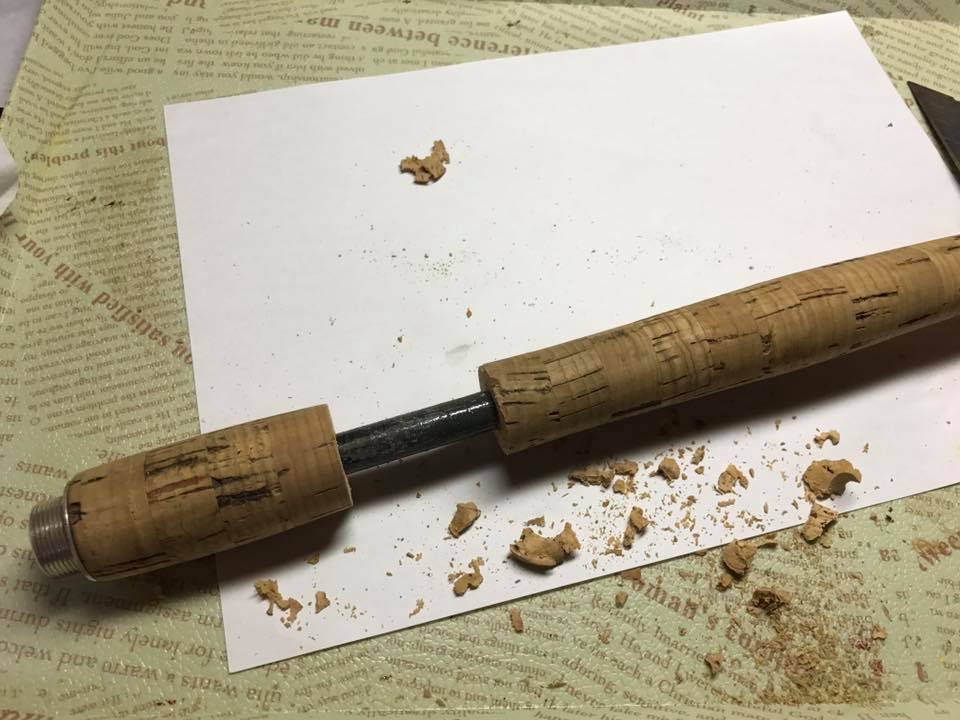 テンカラ竿の修理中のコルクグリップ / Repairing a Tenkara rod cork grip