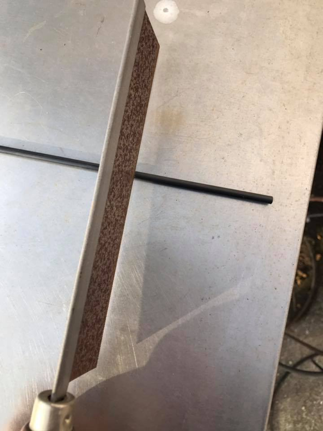 さて、買ってきたカーボンの棒を持ってきて 工作用の精密ノコギリで切り取り。