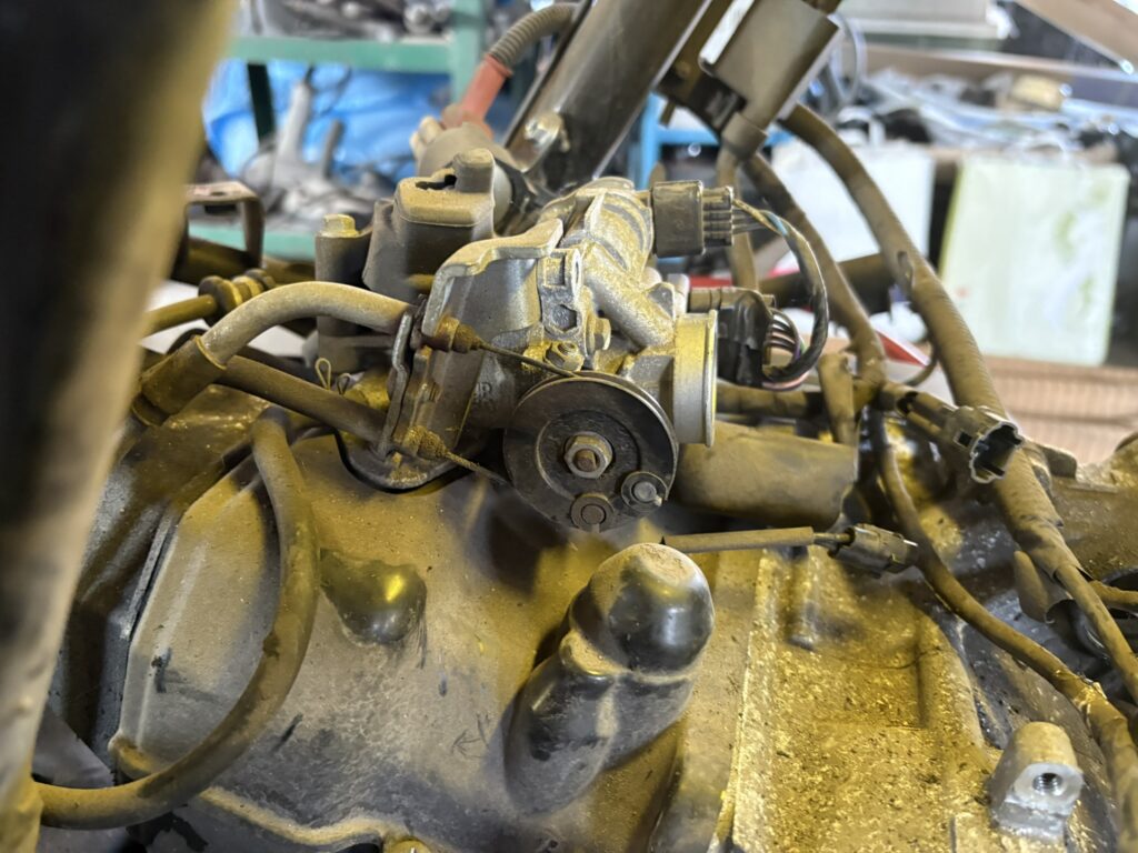 エンジンマウントのボルトを外せば、ユニットごと簡単に外れます。重さはそれなりにありますが、一人でも慎重に扱えば問題ありません。