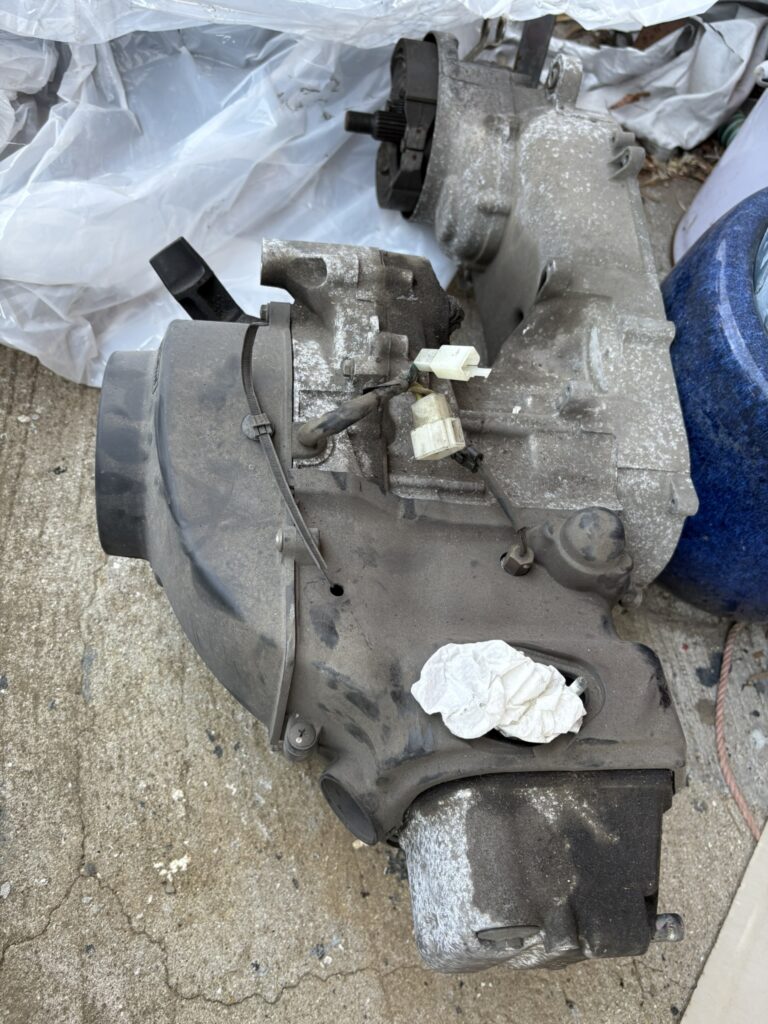 ネットオークションで 走行約13,000km・約2万円 のエンジンを先に購入。バイク屋に頼むと6〜7万円、修理なら10万円は覚悟が必要なので、自分でやれば大幅な節約になります。