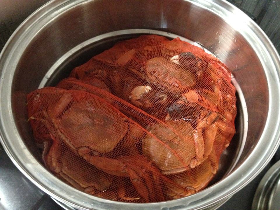 A local species identical to the Chinese mitten crab. Steamed gently in a mesh bag to prevent damage — thoroughly heated to remove any parasites and ensure safety.