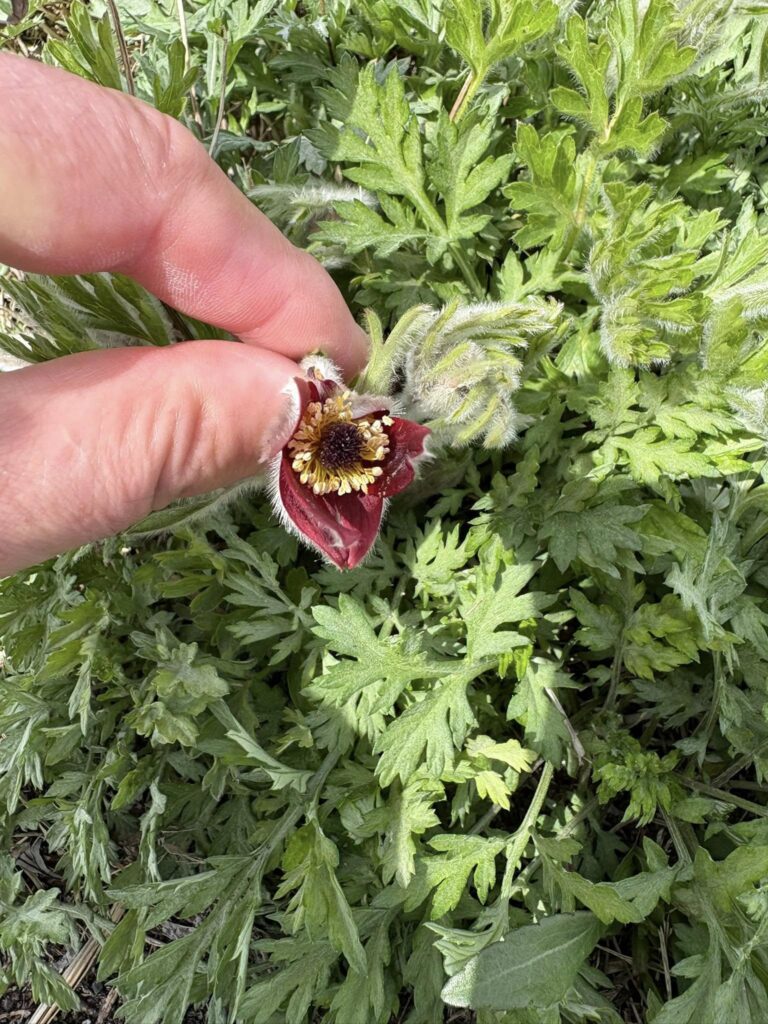 ヨモギの葉の陰には、翁草を見つけました。