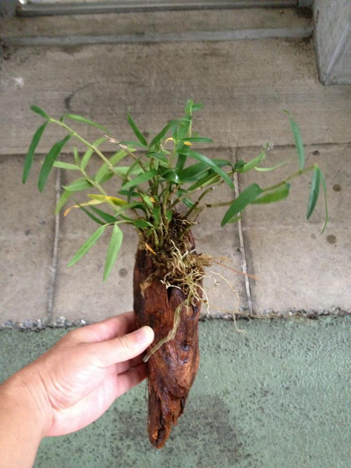 先日、山奥で偶然見つけた**セッコク(石斛)**を少しだけ採取し、水苔で流木に付けて吊るせるように加工してみました。