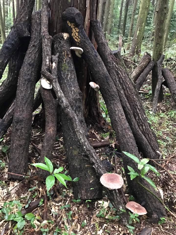 原木しいたけは、伐採した広葉樹に菌を打ち込み、森の中でじっくりと育てます。