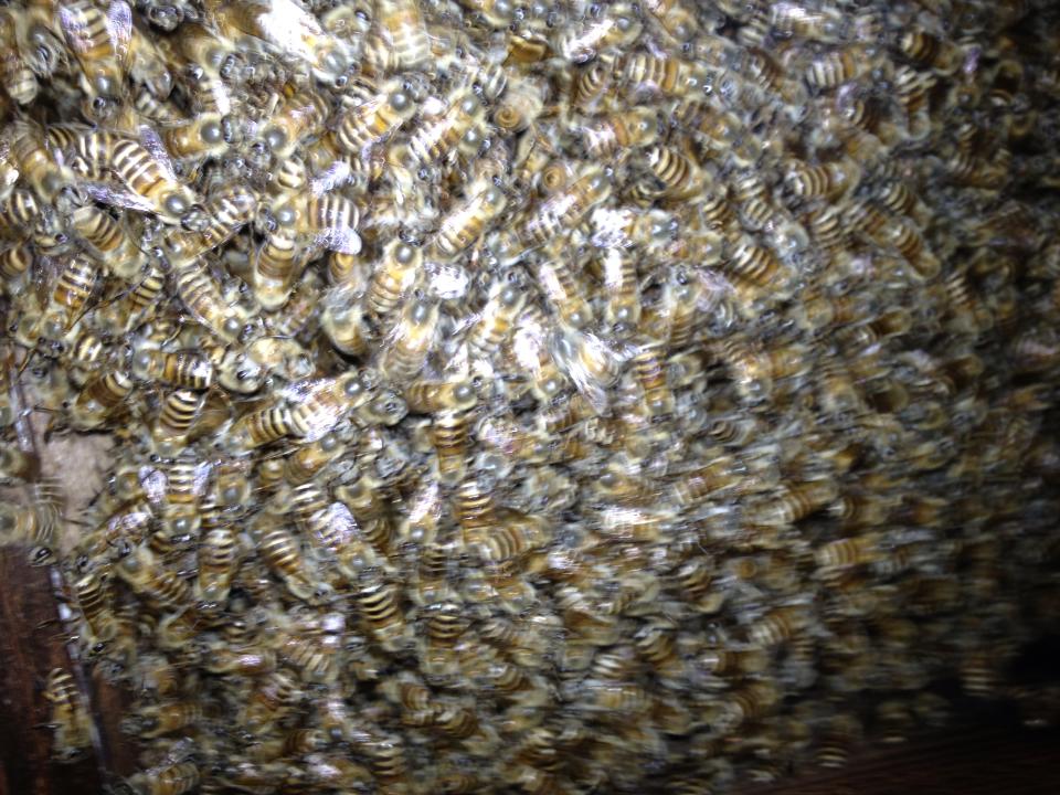すぐ目の前まで、ミツバチの塊がびっしり。