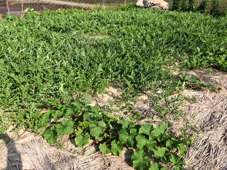 スイカたちも太陽のエネルギーをたっぷり浴びて、ただいま順調にチャージ中です。