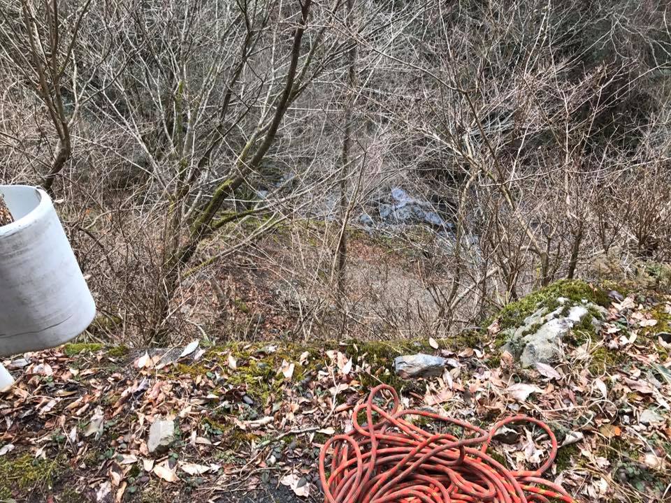 ロープを伝って渓谷へと降りると、息をのむような深い谷底。