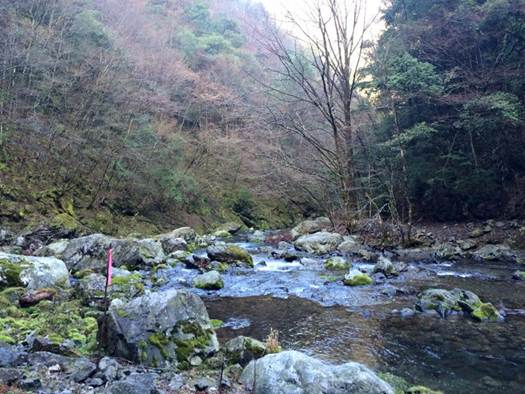 さて、件の場所、林道から一気に数十メートル谷底に降ります。