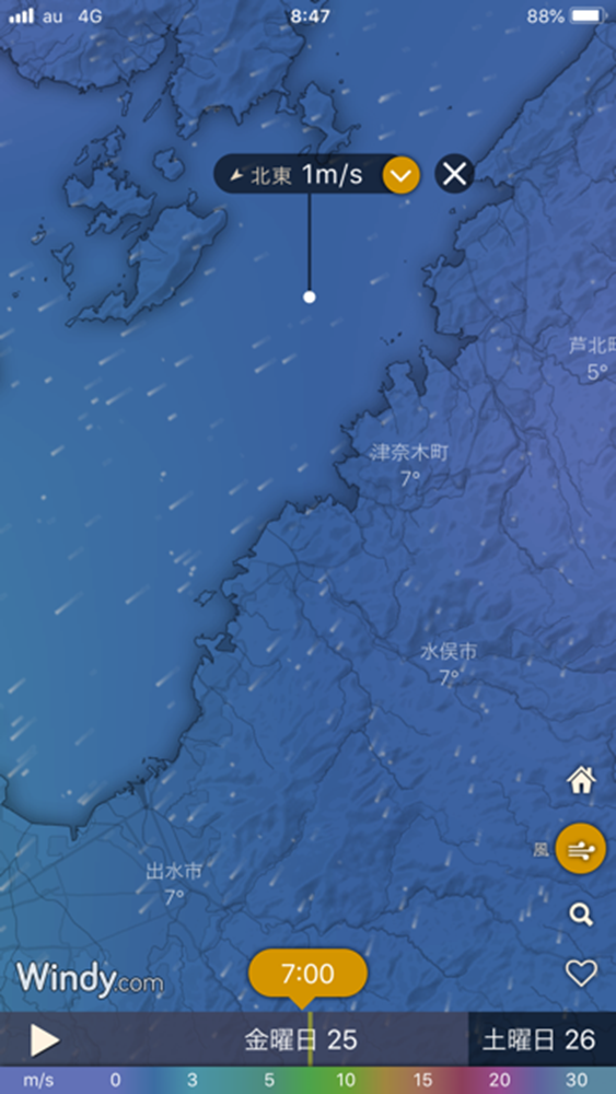 海上に出ると、風はやや強いままで、一部 白波も出ております。