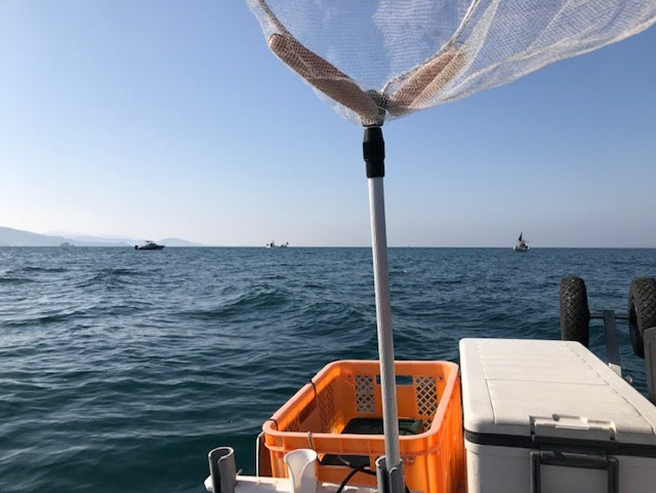 今日は、侍のように 漁船の集団に単騎で カッコ良く突入する予定なのに